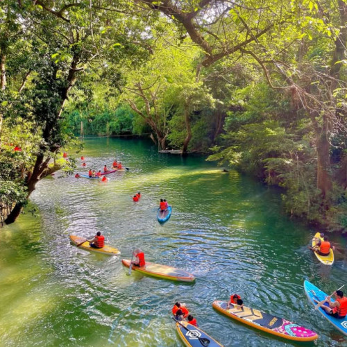 - Tham gia liên hoàn trò chơi trên cây, đu zipline cảm giác mạnh, chèo thuyền kayak hoặc SUP, tắm suối.